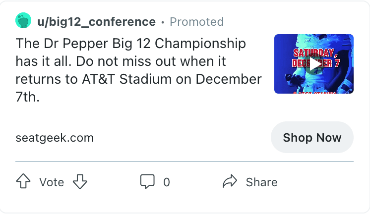 Description: A Reddit-Unique format that allows you to combine text, image, video, and GIFs all in one ad, appearing like organic posts.