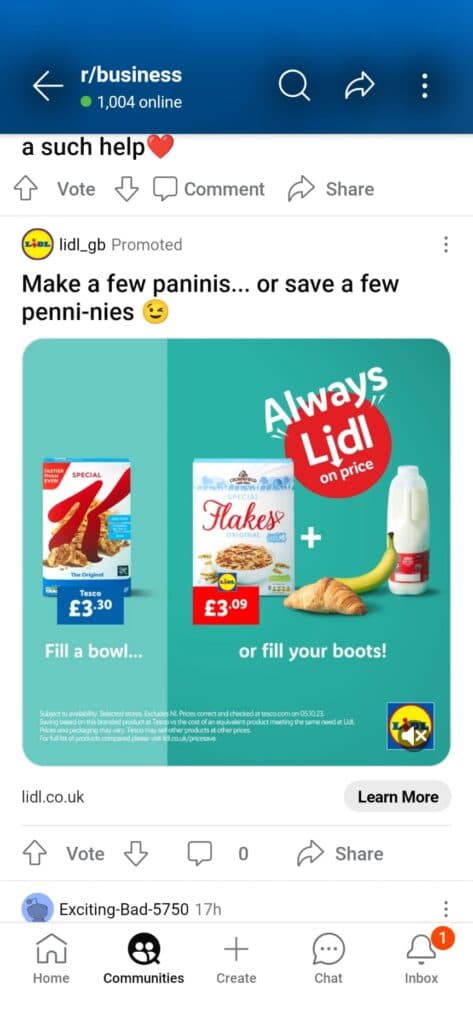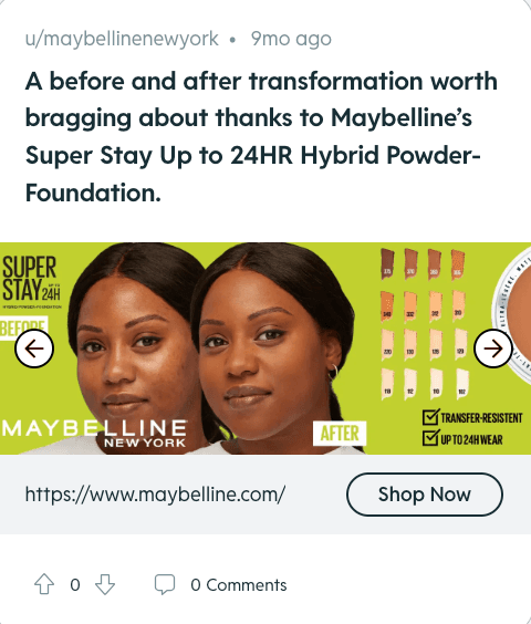 Description: A single image ad that blends into Reddit feeds, resembling an organic post.