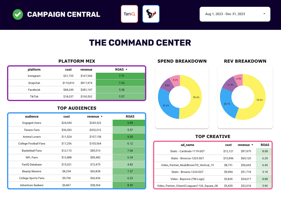 See which ad platforms are fueling campaign success in an instant.